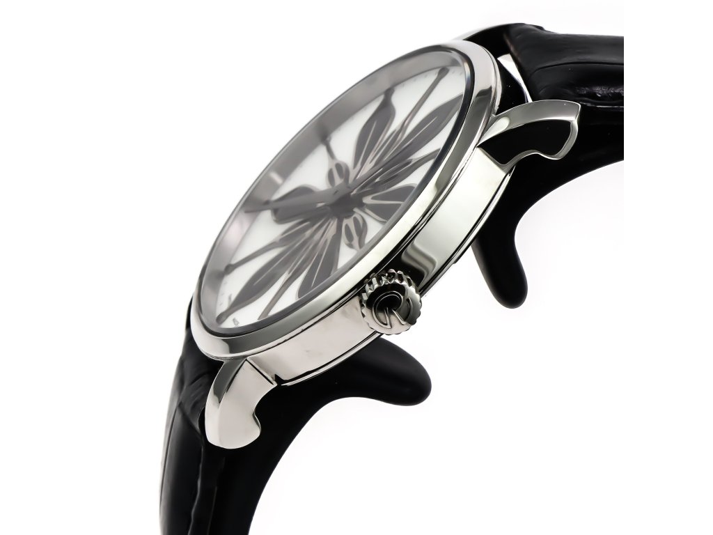 - Ciferník: bílý; černý květinový motiv; černé ručky